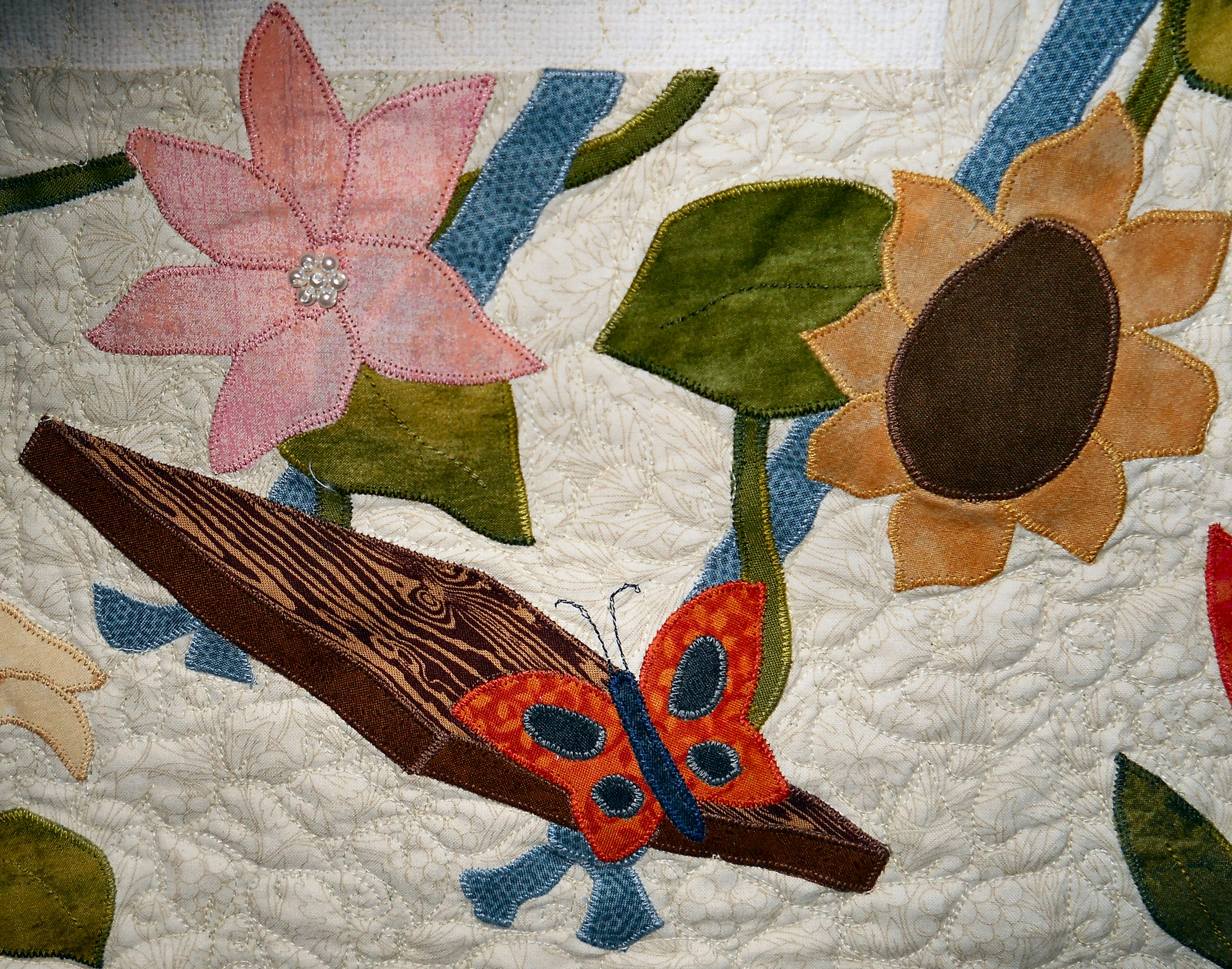 chose a beautiful floral fabric last year and we artists do not like to repeat ourselves.  We like to shake things up and vary our work.  However, when I found this particular floral fabric in the quilt shop, it “called” to me.  It had all the right colors and just seemed perfect.  I was compelled to buy it and, therefore, I did.