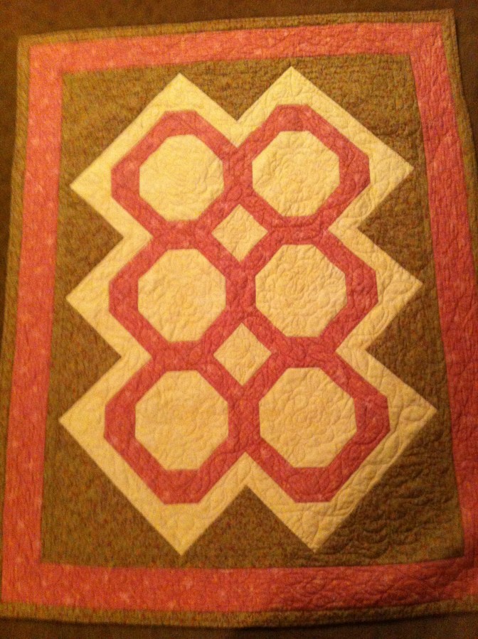 I made this for my friend’s new granddaughter. The quilting was a lot of fun.