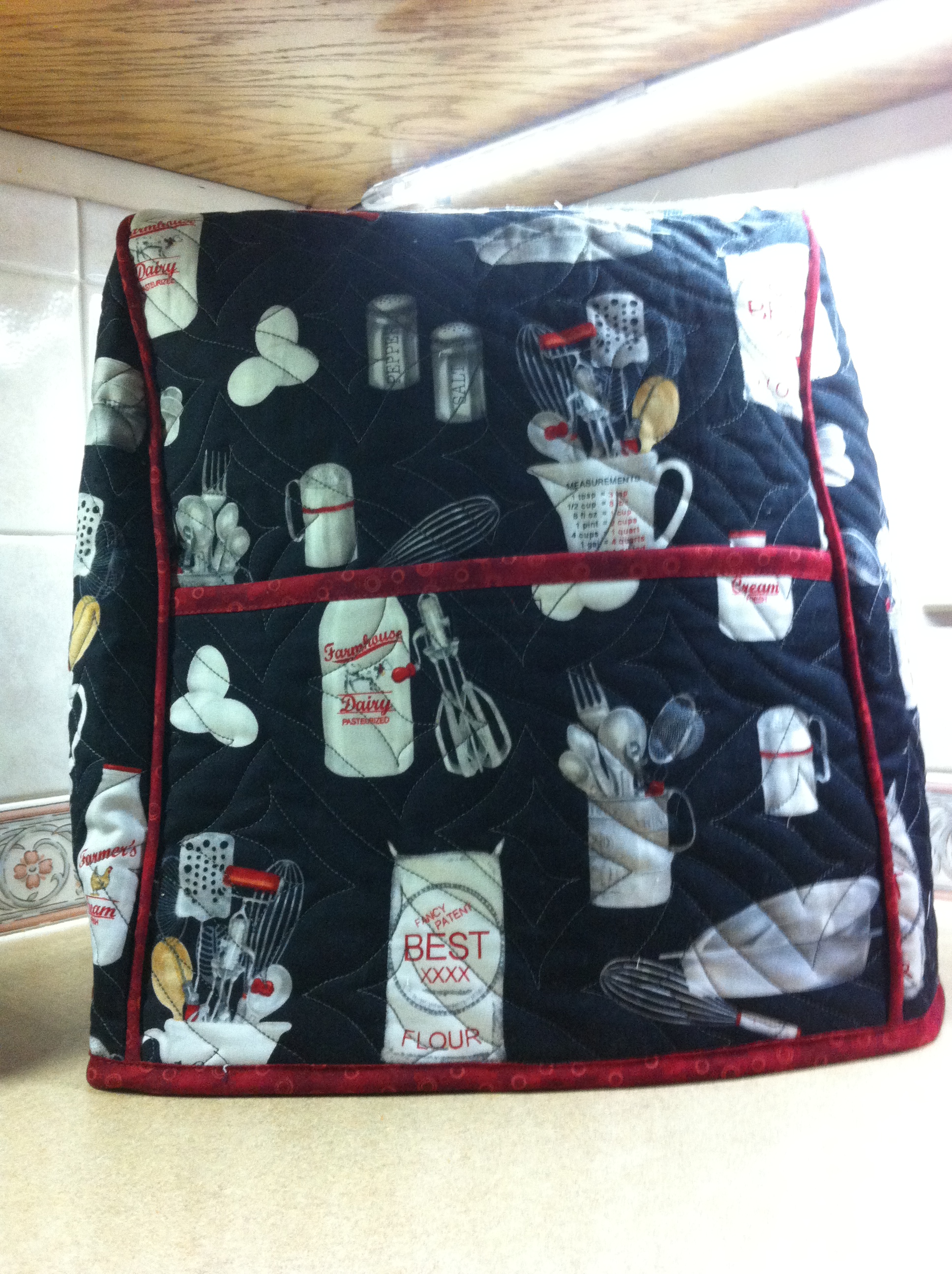 My daughter, Laura, asked for a cover for her mixer so I used the opportunity to make one for myself. I don’t have a picture of hers because it’s boring.