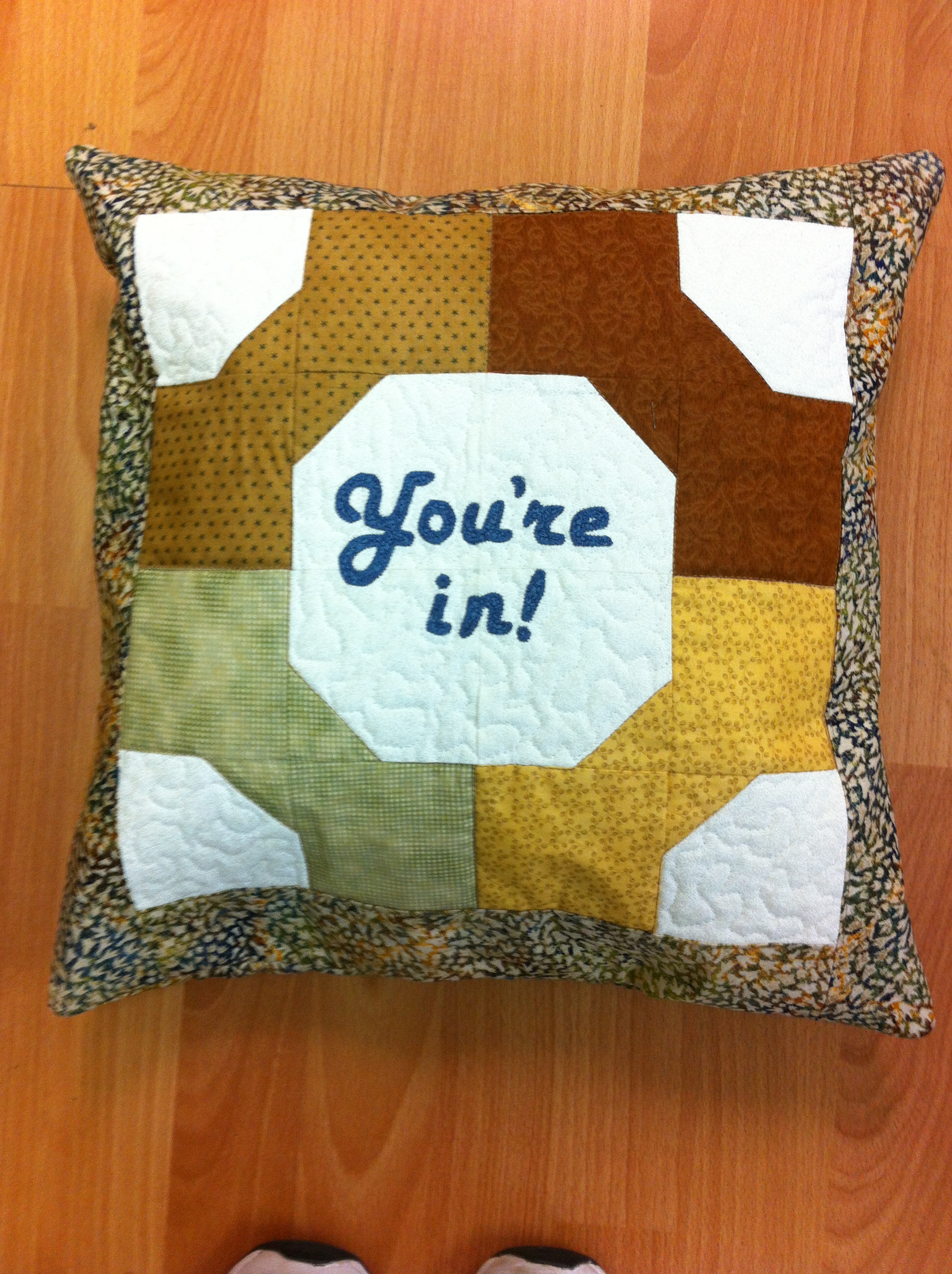 This is side number two of a pillow I made for my daughter’s boyfriend to commemorate the occasion of making it to 7.3 months of dating.