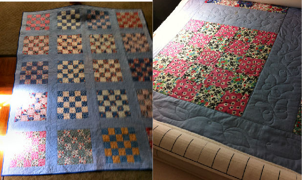 My stepsister called me to tell me about her friend who had a quilt top made by her aunt in the 30’s. The friend was not physically able to finish it. The top was in amazing condition, considering it’s over 70 years old. It was a joy to quilt it on my long-arm.
