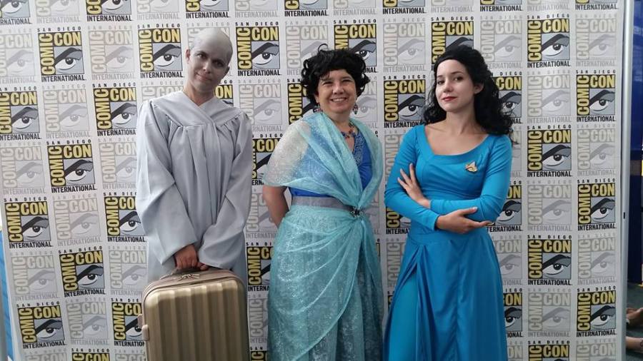 How many 60 year olds can say this? I dressed as a Star Trek character at the San Diego Comic-Con! I was Lwaxanna Troi with my daughter, “Deanna” and my servant, “Mr. Hom.”