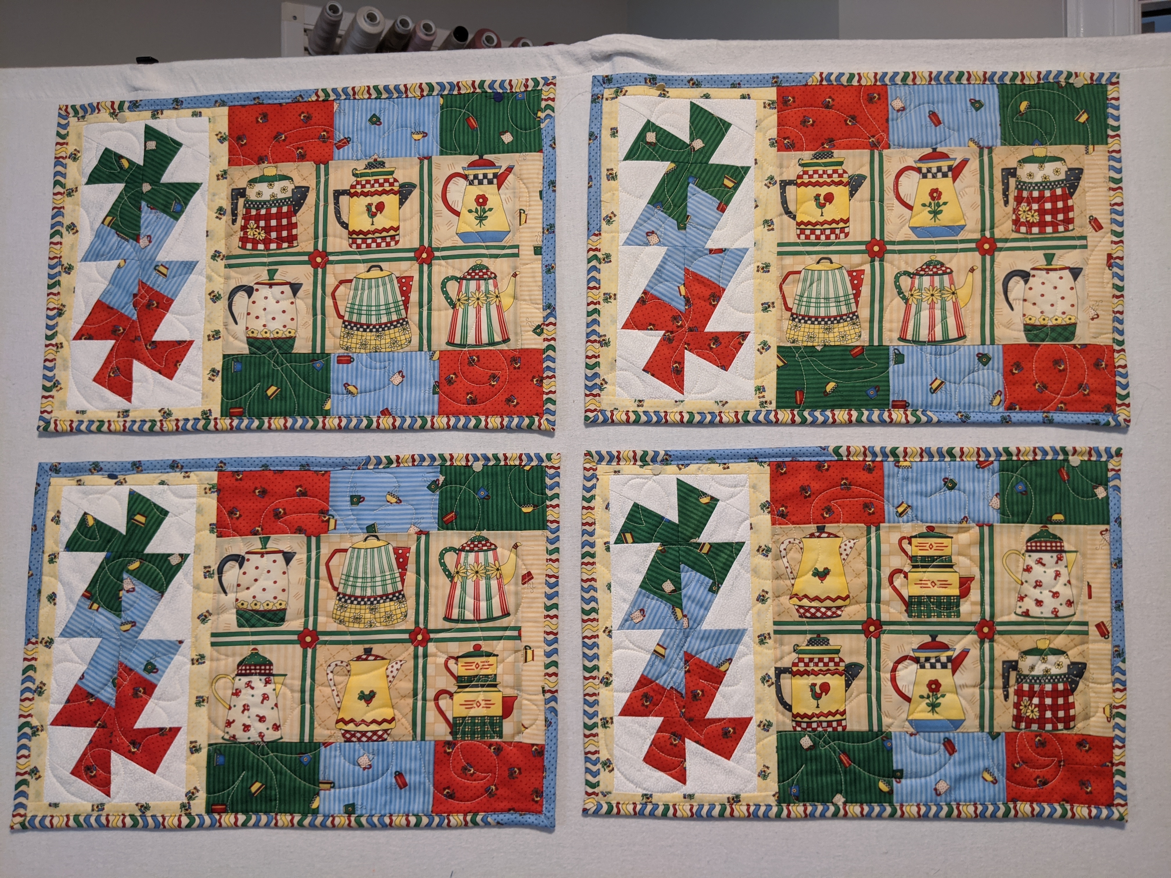 Love it!This was not a “leftover” project but rather an original project that I never finished. These placemats were created using a fat-quarter packet I purchased right after learning the Lil’ Twister block. I couldn’t wait to try it, but then it quickly became a UFO for one reason or another. After I finished these during the lock-down, I had some fabric leftover . . .