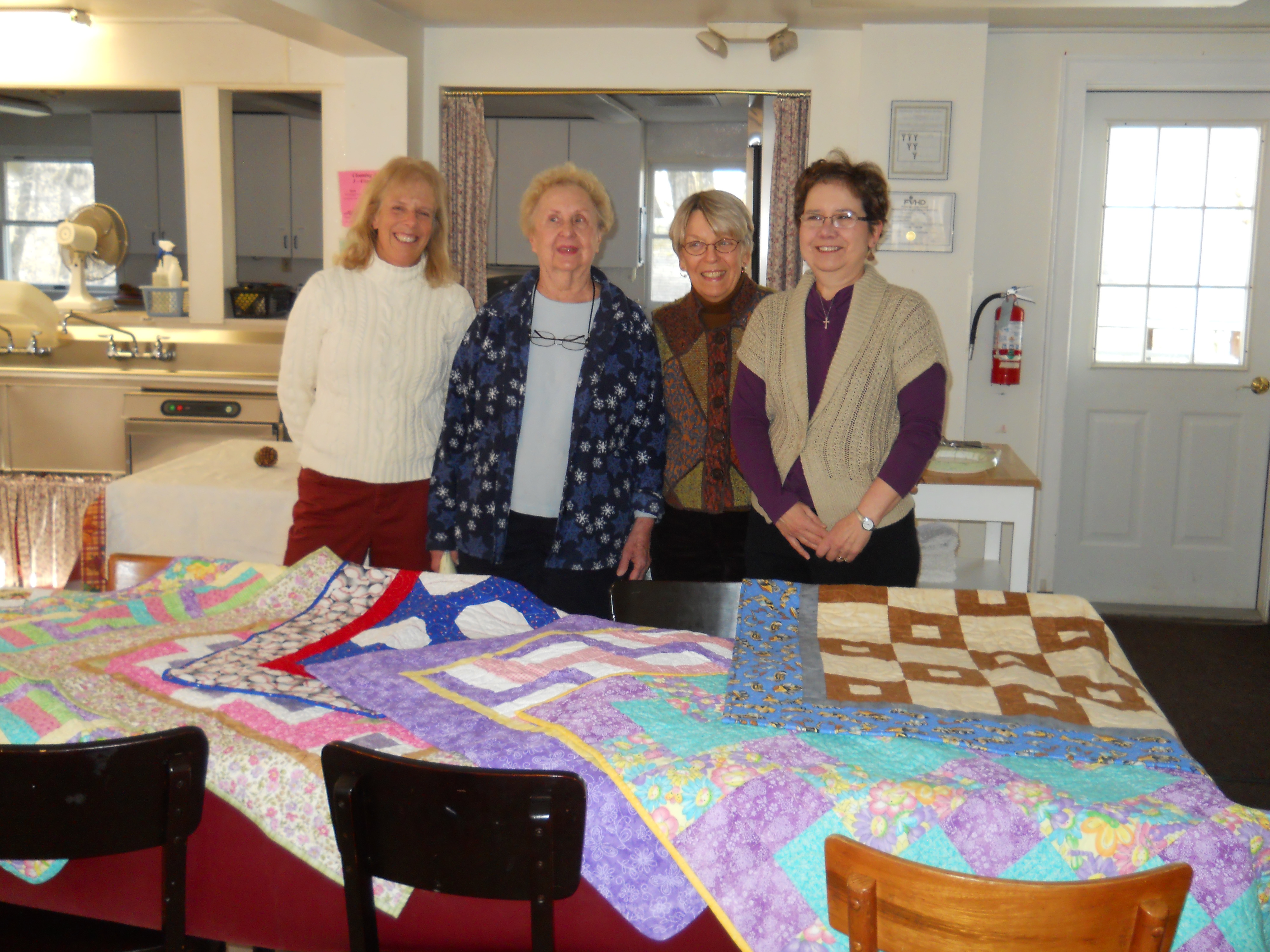 Here are a few of “Dottie’s Devoted Quilters.” Jeanmarie Miller, Doris Kosloffsky, Lee Murphy and me.